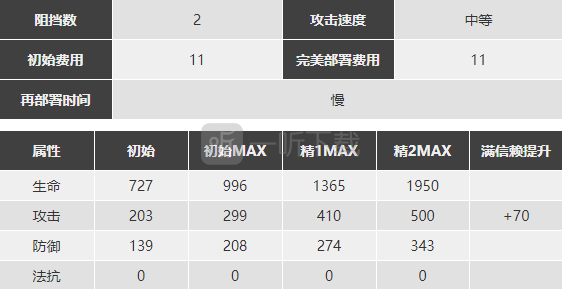 先锋干员的通用技能,单独来看表现也还算是不错,并且由于回费速度更快的缘故,在先锋本职任务上要比二技能好一些。但是由于二技能的效果过于强势,导致一技能在实战中几乎没有什么用武之地。