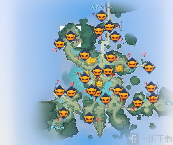 1、如上图所示,大家直接按照对应探灵编号找到对应的位置地点即可。